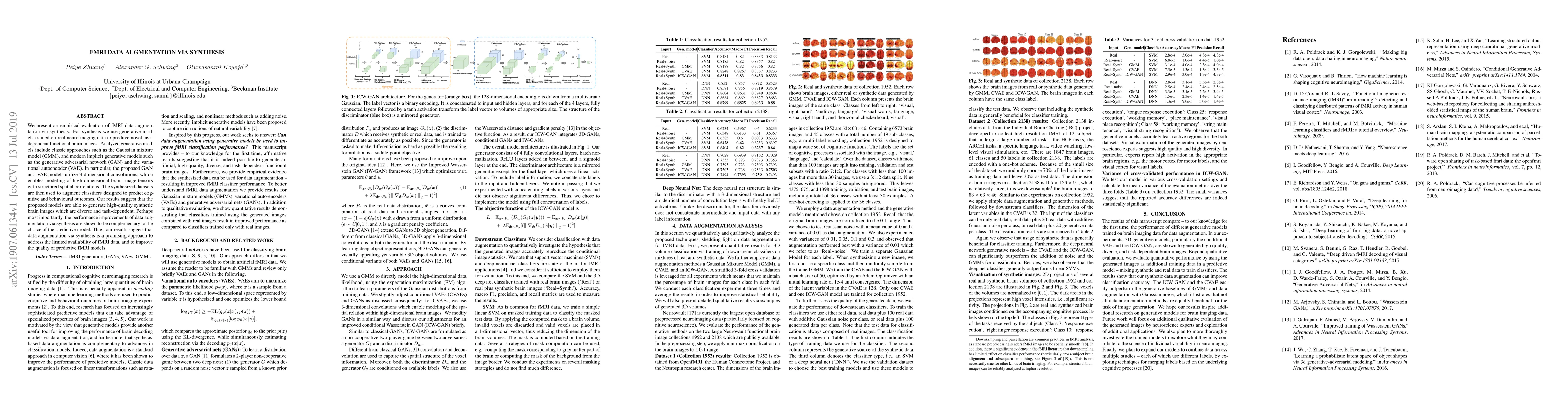 This paper evaluates fMRI data augmentation using generative models, including GMM, GAN, and VAE, to synthesize novel brain images. The results indicate that these models can generate diverse and task-dependent synthetic images, improving predictive model performance and addressing the scarcity of fMRI data.