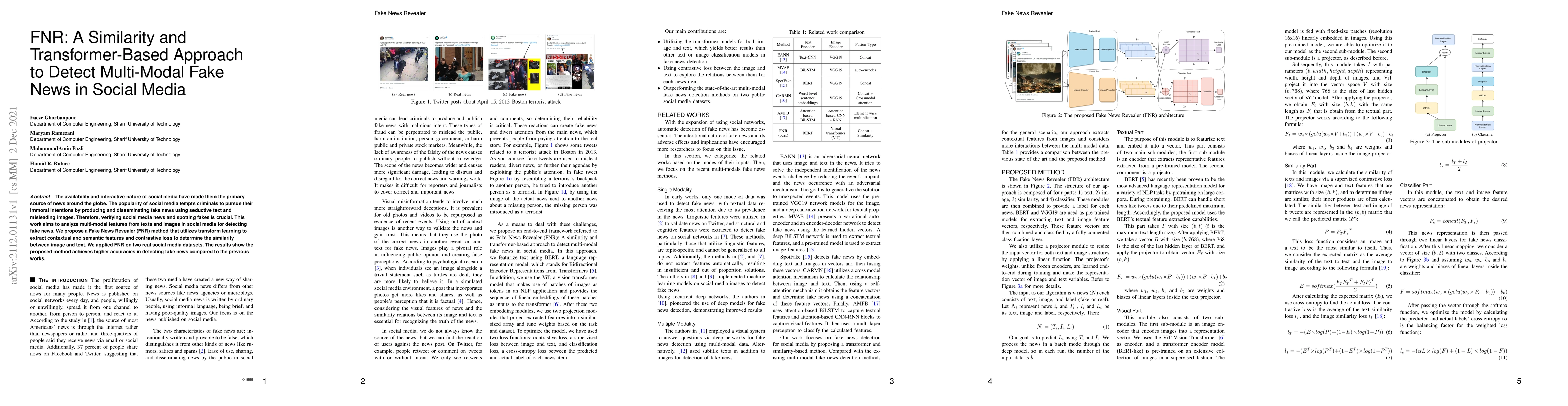 The paper proposes FNR, a method combining transformer-based learning and contrastive loss to detect fake news in social media by analyzing multi-modal features from text and images. The results indicate FNR achieves higher accuracy in identifying fake news compared to existing methods.