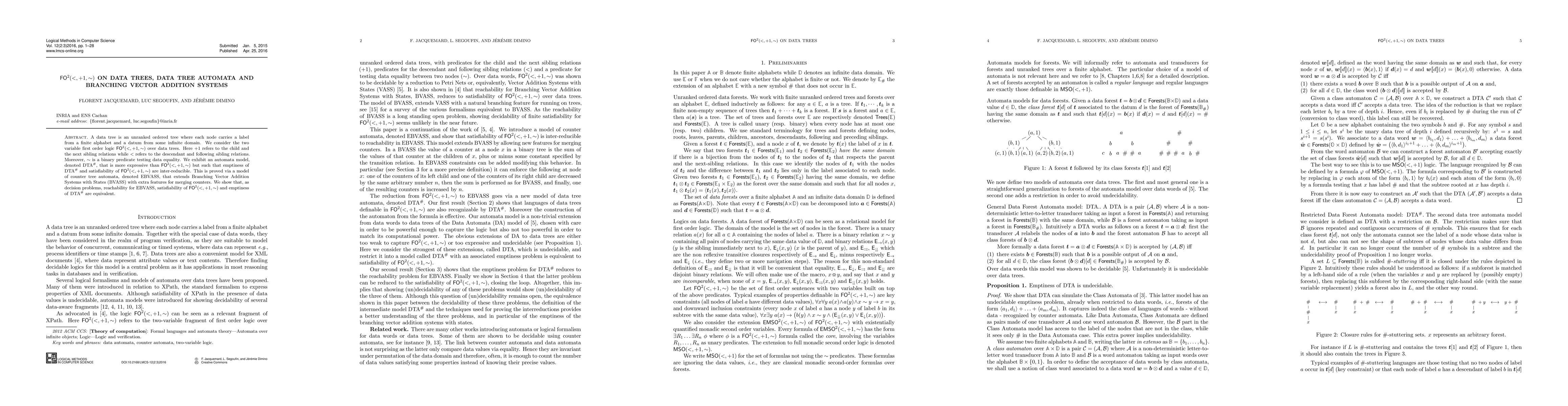 Researchers created a new automata model that can solve problems related to data trees, showing equivalence between emptiness of the model and satisfiability of first-order logic, with implications for decision-making in complex data structures.