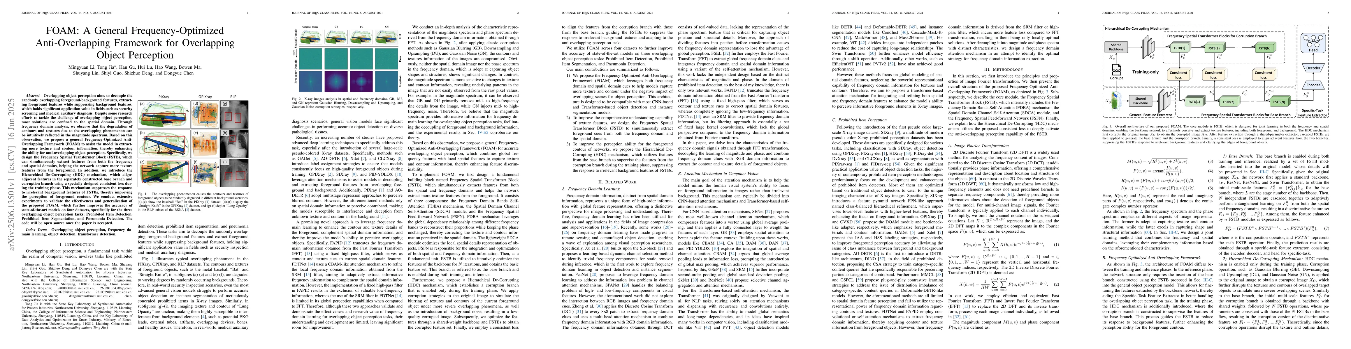The research proposes FOAM, a Frequency-Optimized Anti-Overlapping Framework, which integrates frequency and spatial domain features to enhance foreground texture and contour perception in overlapping object detection tasks. FOAM includes Frequency Spatial Transformer Block (FSTB) and Hierarchical De-Corrupting (HDC) mechanism.