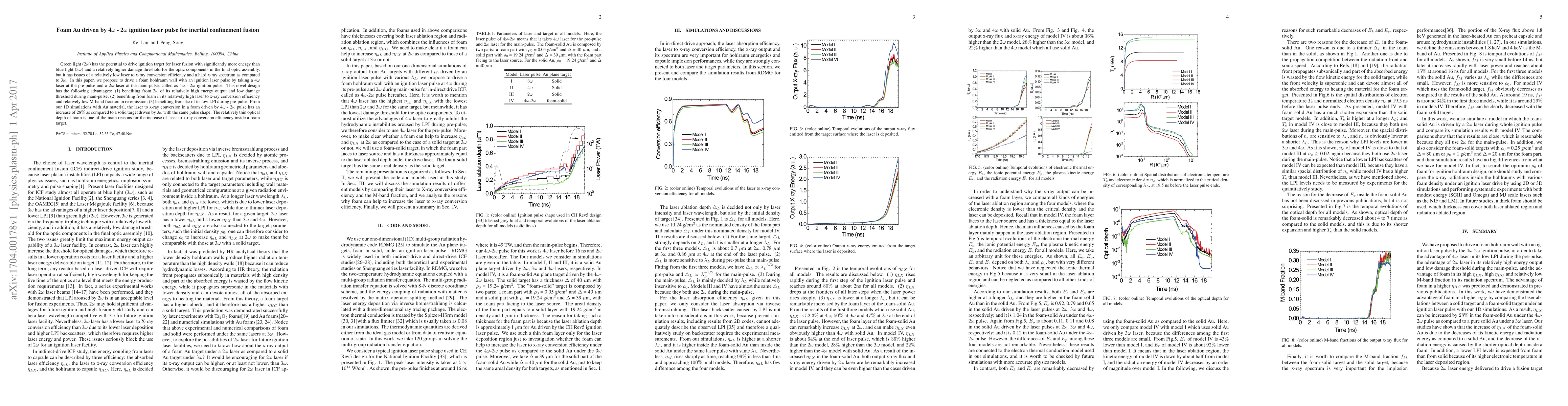 Green light (2$\omega$) has the potential to drive ignition target for laser fusion with significantly more energy than blue light (3$\omega$) and a relatively higher damage threshold for the optic components in the final optic assembly, but it has issues of a relatively low laser to x-ray conversion efficiency and a hard x-ray spectrum as compared to 3$\omega$. In this paper, we propose to drive a foam hohlraum wall with an ignition laser pulse by taking a 4$\omega$ laser at the pre-pulse and a 2$\omega$ laser at the main-pulse, called as 4$\omega$ - 2$\omega$ ignition pulse. This novel design has the following advantages: (1) benefiting from 2$\omega$ of its relatively high energy output and low damage threshold during main-pulse, (2) benefiting from foam in its relatively high laser to x-ray conversion efficiency and relatively low M-band fraction in re-emission, (3) benefiting from 4$\omega$ of its low LPI during pre-pulse. From our 1D simulations with Au material, the laser to x-ray conversion in a foam driven by 4$\omega$ - 2$\omega$ pulse has an increase of $28\%$ as compared to a solid target driven by 3$\omega$ with the same pulse shape. The relatively thin optical depth of foam is one of the main reasons for the increase of laser to x-ray conversion efficiency inside a foam target.
