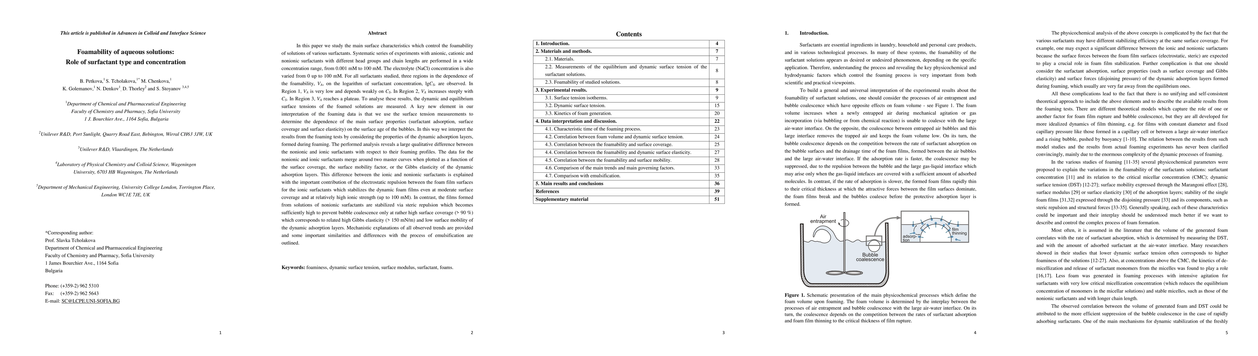This research identifies three foamability regions for various surfactants, based on concentration and electrolyte presence. Key findings include distinct surface property dependencies for ionic vs nonionic surfactants, explained by electrostatic and steric repulsion respectively, with implications for foam film stability.