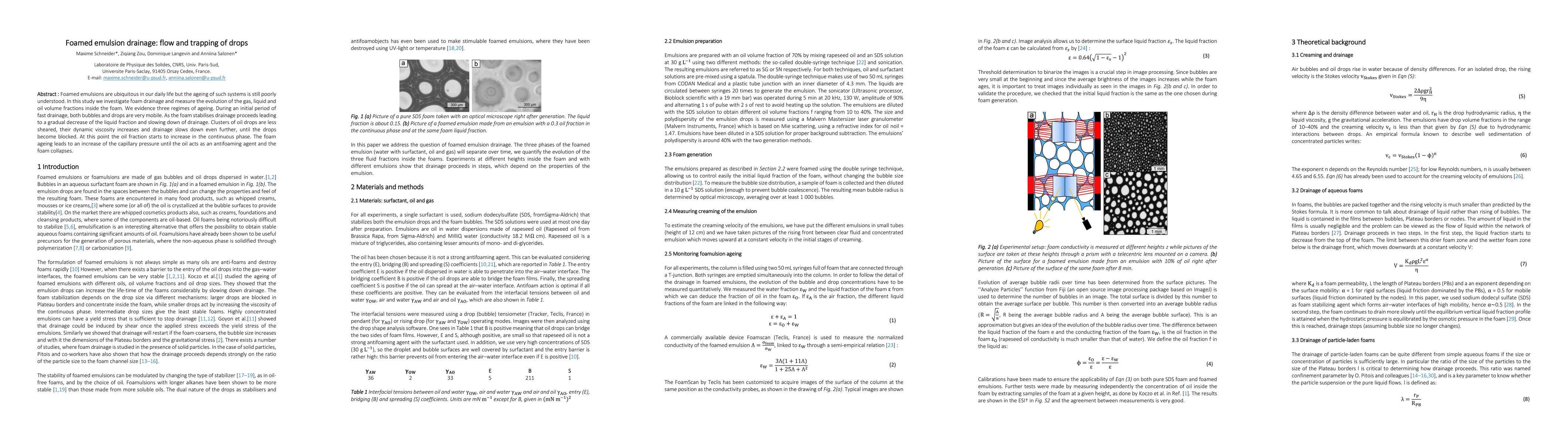 Foam drainage changes from rapid to slow as emulsions age, with oil drops becoming blocked and increasing the foam's capillary pressure, ultimately leading to its collapse.