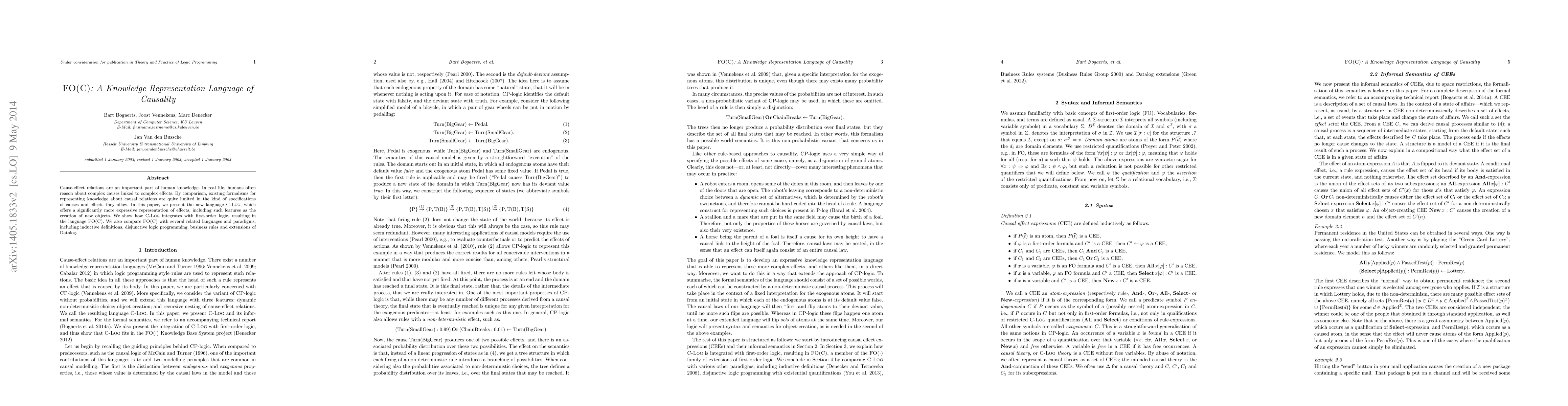 The paper introduces FO(C), a new knowledge representation language that enhances the expressiveness of causal relations by allowing the creation of new objects. It integrates C-Log with first-order logic, and compares its capabilities with other formalisms like inductive definitions and disjunctive logic programming.