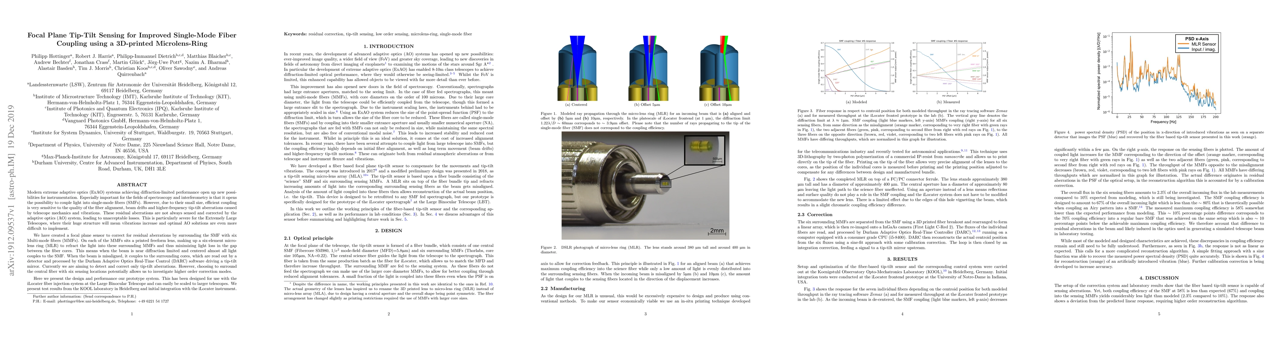 This paper presents a 3D-printed microlens-ring design to improve single-mode fiber coupling by sensing and correcting tip-tilt aberrations. The system uses six surrounding multi-mode fibers with freeform lenses, allowing for efficient light coupling and aberration correction, demonstrated through prototype testing at the LBT.