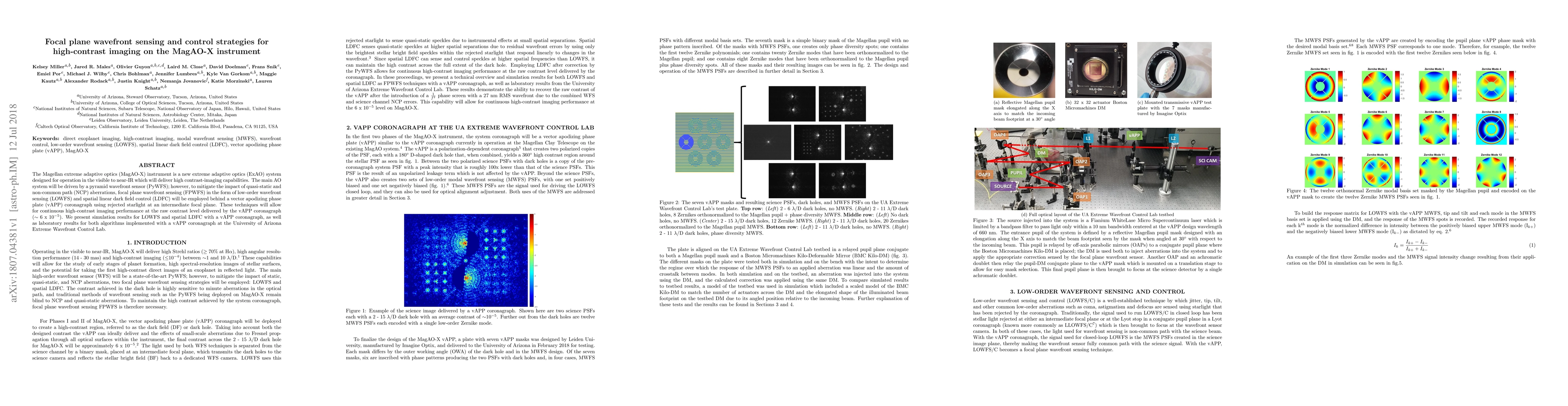 The MagAO-X instrument employs focal plane wavefront sensing strategies, including low-order wavefront sensing and spatial linear dark field control, to enhance high-contrast imaging capabilities through a vector apodizing phase plate coronagraph. Laboratory results demonstrate effective mitigation of quasi-static and non-common path aberrations.