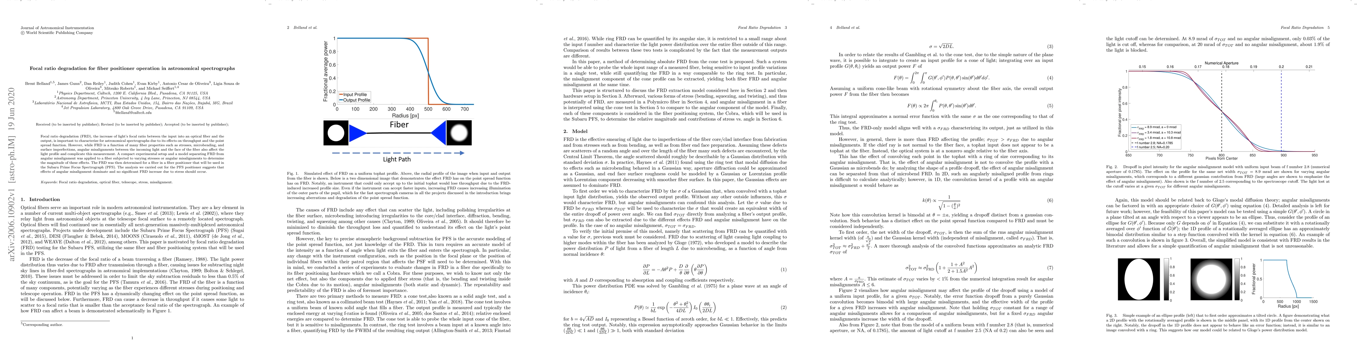 This paper investigates focal ratio degradation (FRD) in astronomical spectrographs, focusing on the effects of angular misalignments and stresses in optical fibers. The study concludes that angular misalignments significantly impact FRD, while stresses do not notably increase FRD, particularly for the Subaru Prime Focus Spectrograph fiber positioner.