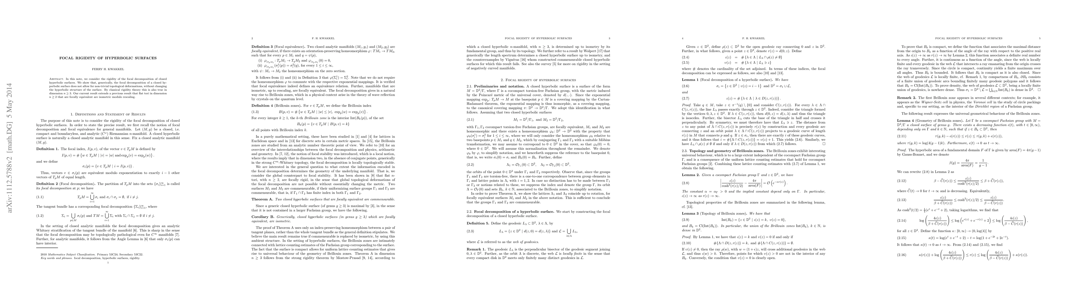 A combination of mathematical techniques, including differential geometry and topology, were used to analyze the focal stability of hyperbolic surfaces.
