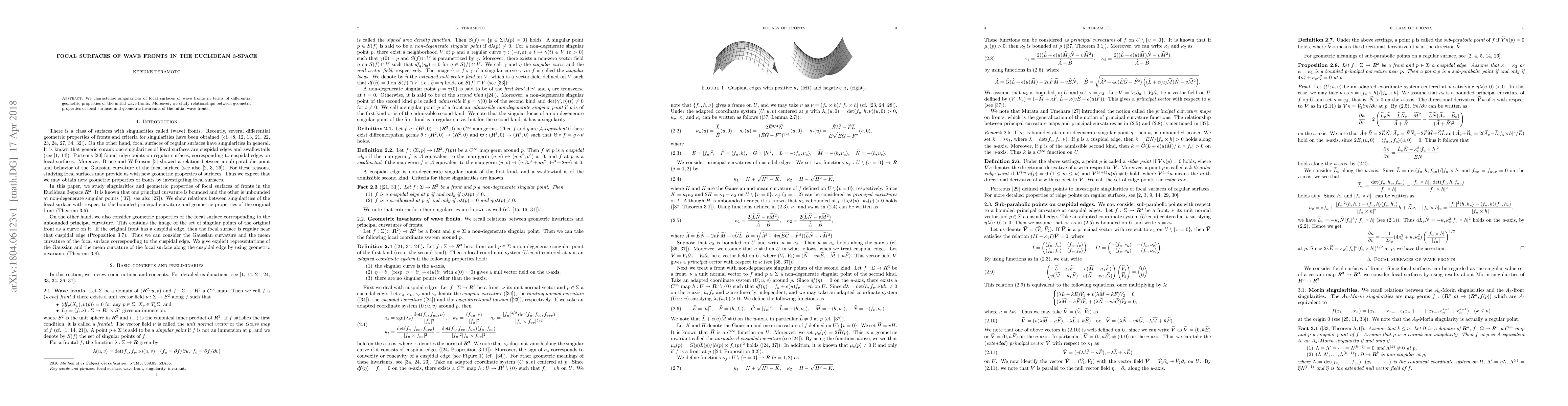Summary: This paper investigates singularities in focal surfaces of wave fronts using differential geometry, focusing on how these singularities relate to the initial wave front's geometric properties and invariants.