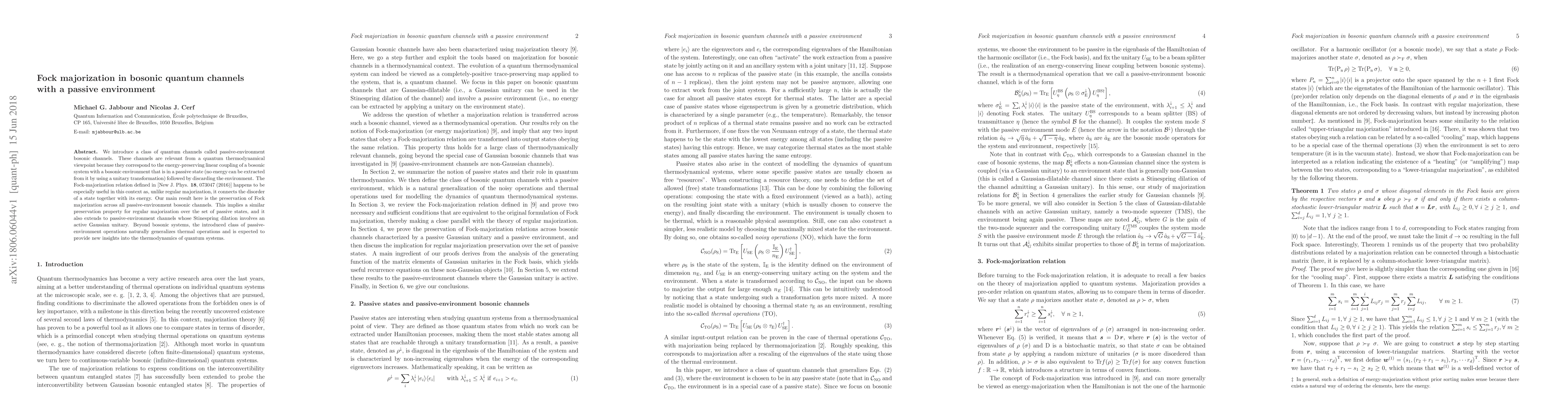 This paper introduces passive-environment bosonic channels, which preserve energy while coupling a bosonic system with a passive environment, and demonstrates that Fock majorization is preserved across these channels. This preservation extends to regular majorization for passive states and provides insights into the thermodynamics of quantum systems.