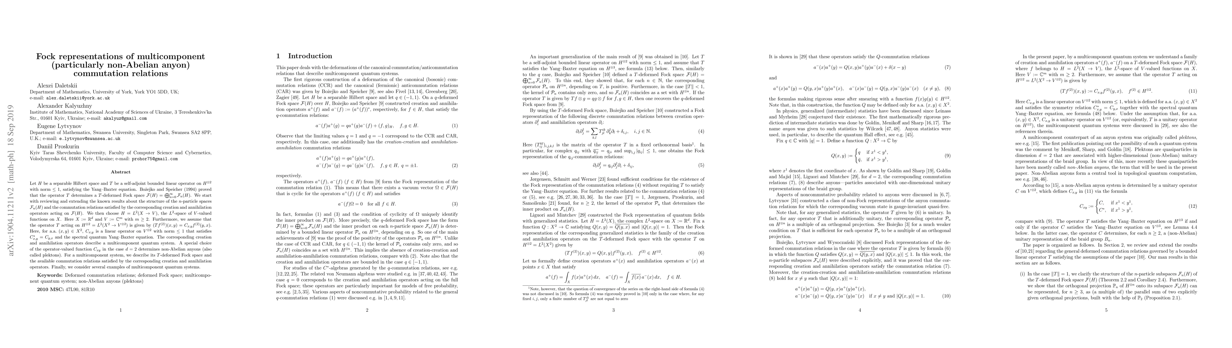 Let $H$ be a separable Hilbert space and $T$ be a self-adjoint bounded linear operator on $H^{\otimes 2}$ with norm $\le1$, satisfying the Yang--Baxter equation. Bo\.zejko and Speicher (1994) proved that the operator $T$ determines a $T$-deformed Fock space $\mathcal F(H)=\bigoplus_{n=0}^\infty\mathcal F_n(H)$. We start with reviewing and extending the known results about the structure of the $n$-particle spaces $\mathcal F_n(H)$ and the commutation relations satisfied by the corresponding creation and annihilation operators acting on $\mathcal F(H)$. We then choose $H=L^2(X\to V)$, the $L^2$-space of $V$-valued functions on $X$. Here $X:=\mathbb R^d$ and $V:=\mathbb C^m$ with $m\ge2$. Furthermore, we assume that the operator $T$ acting on $H^{\otimes 2}=L^2(X^2\to V^{\otimes 2})$ is given by $(Tf^{(2)})(x,y)=C_{x,y}f^{(2)}(y,x)$. Here, for a.a.\ $(x,y)\in X^2$, $C_{x,y}$ is a linear operator on $V^{\otimes 2}$ with norm $\le1$ that satisfies $C_{x,y}^*=C_{y,x}$ and the spectral quantum Yang--Baxter equation. The corresponding creation and annihilation operators describe a multicomponent quantum system. A special choice of the operator-valued function $C_{xy}$ in the case $d=2$ determines non-Abelian anyons (also called plektons). For a multicomponent system, we describe its $T$-deformed Fock space and the available commutation relations satisfied by the corresponding creation and annihilation operators. Finally, we consider several examples of multicomponent quantum systems.
