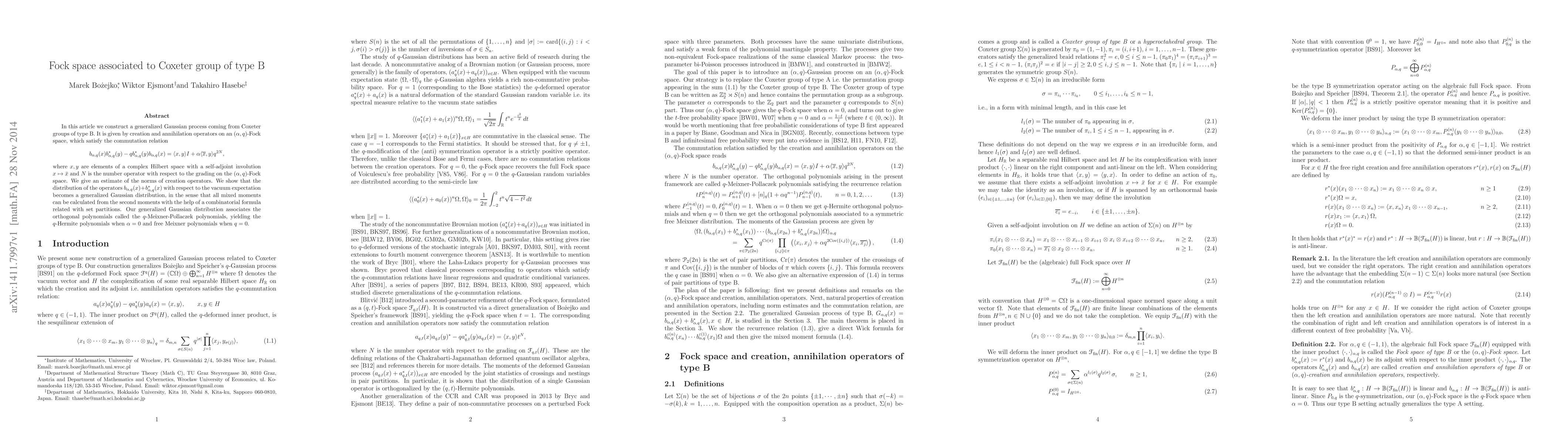 Researchers created a generalized Gaussian process from Coxeter group of type B using creation and annihilation operators on an $( ext{α,q})$-Fock space, yielding the $q$-Meixner-Pollaczek polynomials when $ ext{Π}=0$ and free Meixner polynomials when $q=0$.