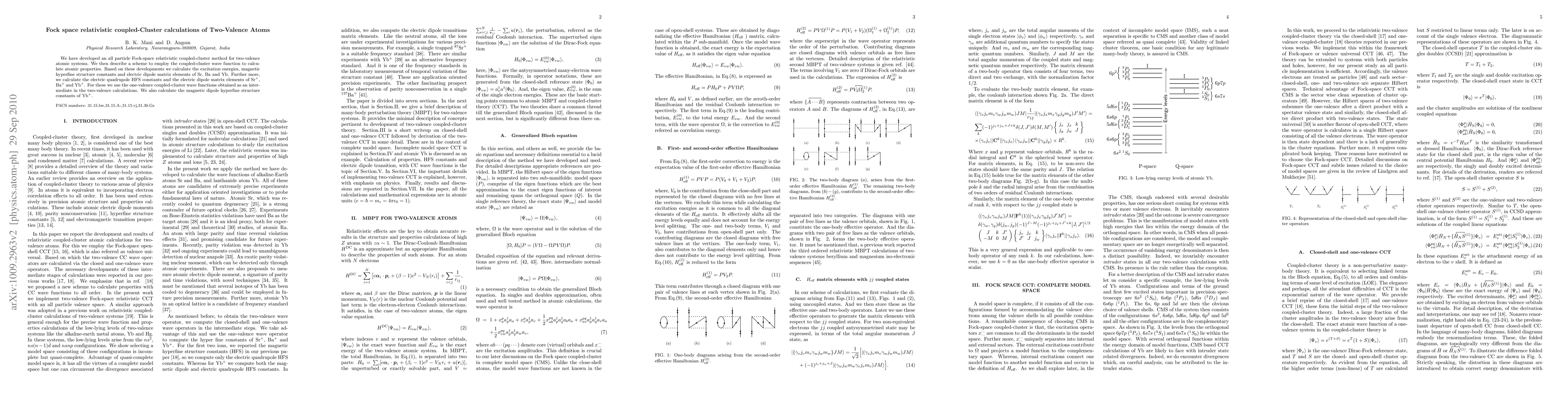 This paper introduces a relativistic coupled-cluster method in Fock space for two-valence atomic systems, applying it to calculate various atomic properties for Sr, Ba, Yb, and their respective singly ionized states. The study determines excitation energies, magnetic hyperfine constants, and electric dipole and quadrupole matrix elements.