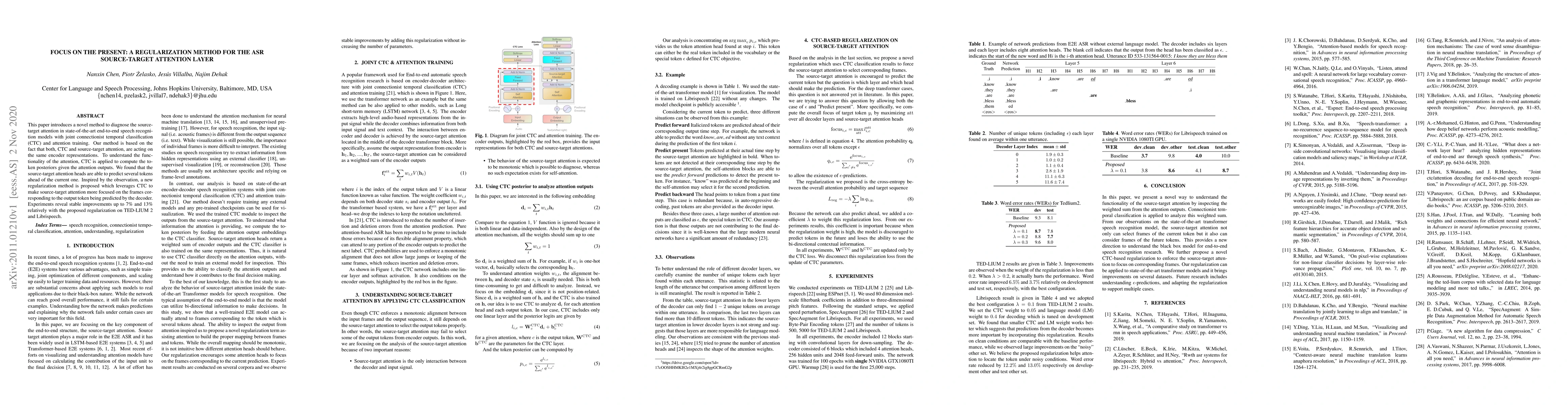 This paper introduces a novel method to diagnose the source-target attention in state-of-the-art end-to-end speech recognition models with joint connectionist temporal classification (CTC) and attention training. Our method is based on the fact that both, CTC and source-target attention, are acting on the same encoder representations. To understand the functionality of the attention, CTC is applied to compute the token posteriors given the attention outputs. We found that the source-target attention heads are able to predict several tokens ahead of the current one. Inspired by the observation, a new regularization method is proposed which leverages CTC to make source-target attention more focused on the frames corresponding to the output token being predicted by the decoder. Experiments reveal stable improvements up to 7\% and 13\% relatively with the proposed regularization on TED-LIUM 2 and LibriSpeech.