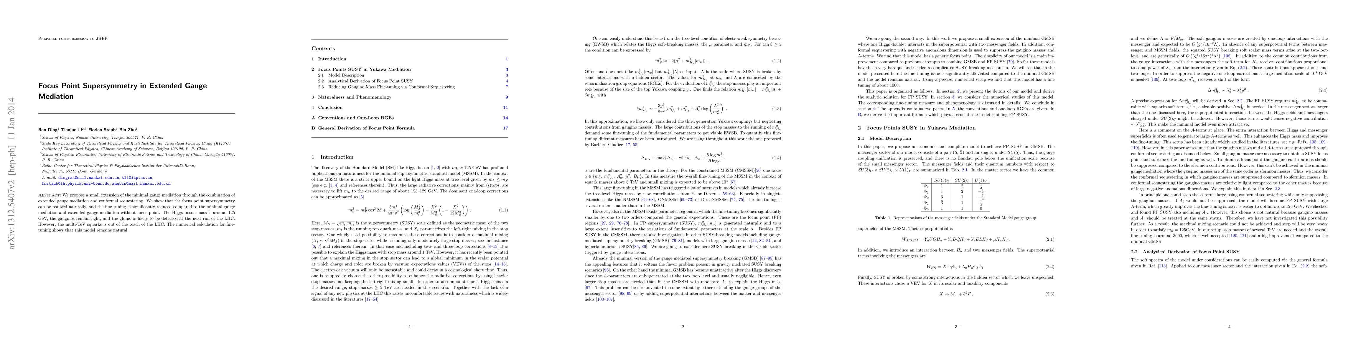 This paper proposes an extended gauge mediation model incorporating focus point supersymmetry, achieving natural fine-tuning and predicting a Higgs mass around 125 GeV, light gauginos, and a detectable gluino at the LHC, while squarks remain beyond LHC reach.
