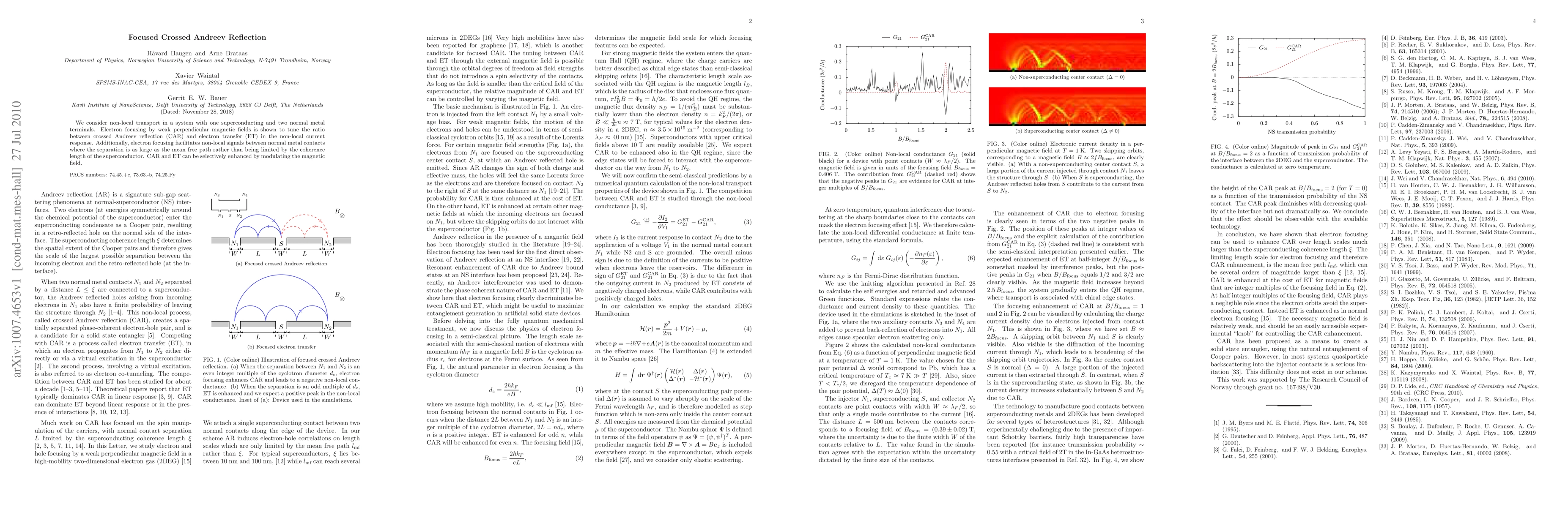 This research explores non-local transport in a superconducting-normal metal junction under weak magnetic fields, demonstrating that electron focusing tunes the ratio of crossed Andreev reflection to electron transfer, and can enhance non-local signals over larger separations than the superconductor's coherence length. Magnetic modulation allows selective enhancement of these processes.
