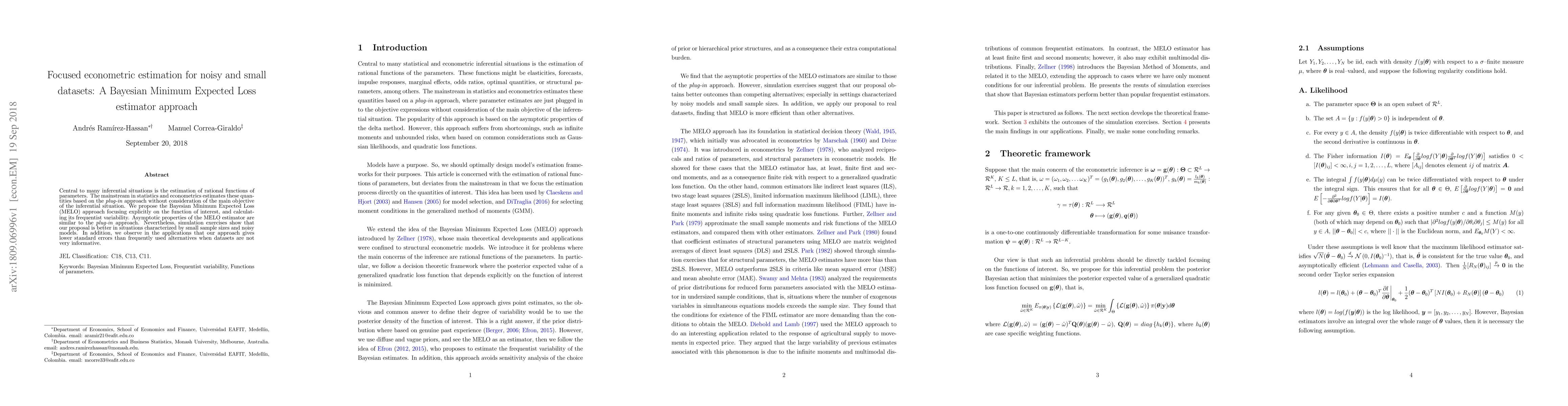 Central to many inferential situations is the estimation of rational functions of parameters. The mainstream in statistics and econometrics estimates these quantities based on the plug-in approach without consideration of the main objective of the inferential situation. We propose the Bayesian Minimum Expected Loss (MELO) approach focusing explicitly on the function of interest, and calculating its frequentist variability. Asymptotic properties of the MELO estimator are similar to the plug-in approach. Nevertheless, simulation exercises show that our proposal is better in situations characterized by small sample sizes and noisy models. In addition, we observe in the applications that our approach gives lower standard errors than frequently used alternatives when datasets are not very informative.