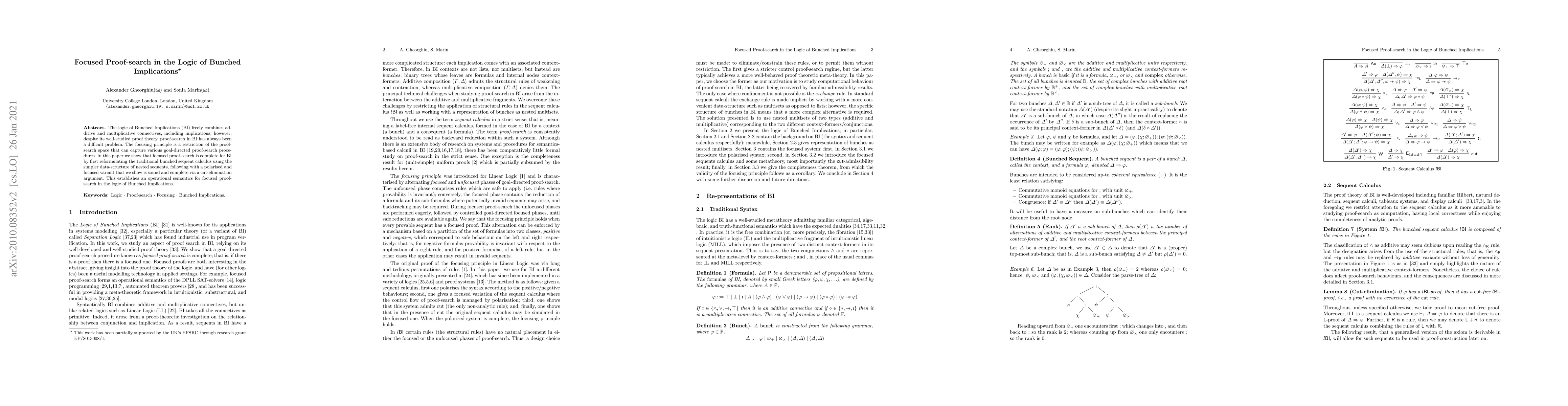 The logic of Bunched Implications (BI) freely combines additive and multiplicative connectives, including implications; however, despite its well-studied proof theory, proof-search in BI has always been a difficult problem. The focusing principle is a restriction of the proof-search space that can capture various goal-directed proof-search procedures. In this paper, we show that focused proof-search is complete for BI by first reformulating the traditional bunched sequent calculus using the simpler data-structure of nested sequents, following with a polarised and focused variant that we show is sound and complete via a cut-elimination argument. This establishes an operational semantics for focused proof-search in the logic of Bunched Implications.