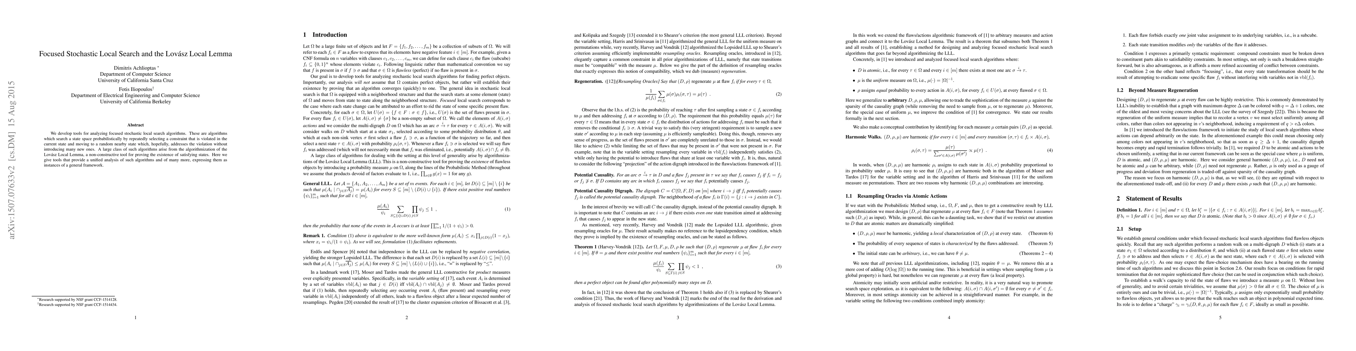 Researchers develop a framework to analyze focused stochastic local search algorithms, which address violations in states using probabilistic moves, providing insights into their performance and existence of satisfying states.