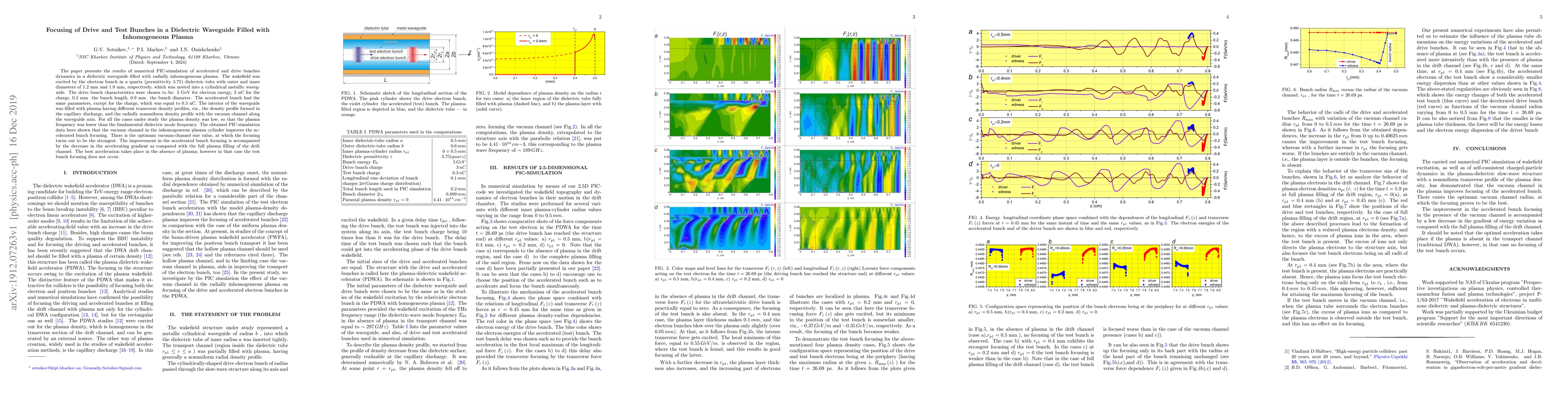 This work is novel in its examination of the effects of inhomogeneous plasma on bunch focusing in dielectric waveguides, identifying an optimal vacuum channel size for enhanced focusing and providing a basis for future experimental research in plasma wakefield acceleration.