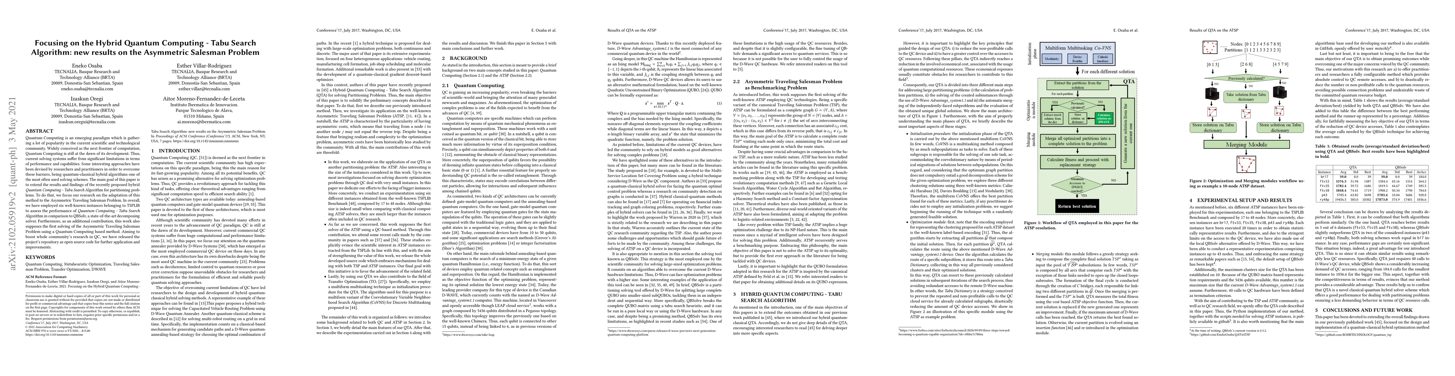This paper explores the application of a hybrid Quantum Computing - Tabu Search Algorithm to the Asymmetric Traveling Salesman Problem, achieving the first quantum-based solution for this problem and comparing its performance against QBSolv. The authors release their open-source code to foster further research in quantum computing.