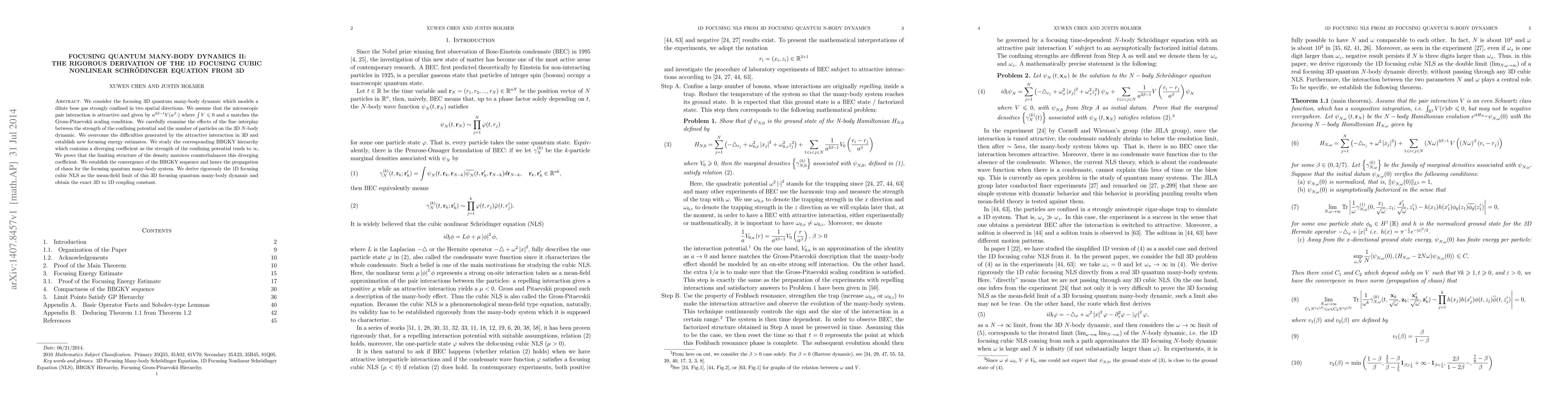 This research rigorously derives the 1D focusing cubic Nonlinear Schrödinger Equation (NLS) from a 3D focusing quantum many-body dynamic modeling a dilute bosonic gas. By examining the interplay between confinement strength and particle number, new energy estimates are established, and the BBGKY hierarchy's convergence is proven, demonstrating the propagation of chaos in the system. The study obtains the exact 3D to 1D coupling constant.