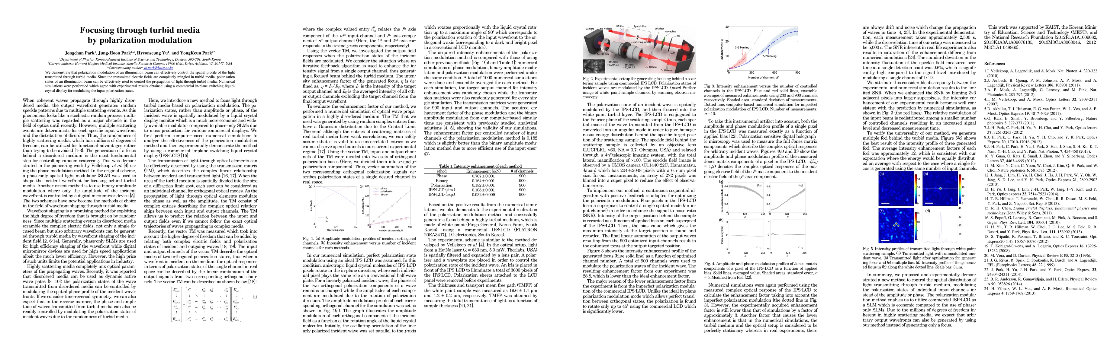 This paper demonstrates that polarization modulation of an illumination beam can control the spatial profile of light transmitted through turbid media, effectively managing the propagation of light where electric fields are intermingled. Numerical simulations corroborate experimental results using a liquid-crystal display to modulate input polarization states.