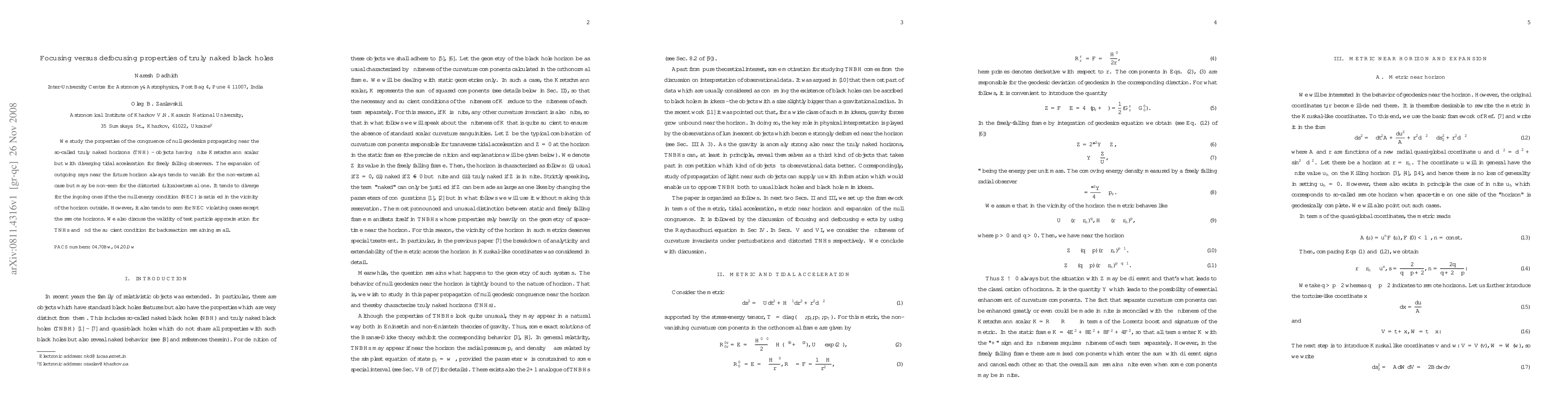 We study the properties of the congruence of null geodesics propagating near the so-called truly naked horizons (TNH) - objects having finite Kretschmann scalar but with diverging tidal acceleration for freely falling observers. The expansion of outgoing rays near the future horizon always tends to vanish for the non-extremal case but may be non-zero for the distorted (ultra)extremal one. It tends to diverge for the ingoing ones if the the null energy condition (NEC) is satisfied in the vicinity of the horizon outside. However, it also tends to zero for NEC violating cases except the remote horizons. We also discuss the validity of test particle approximation for TNHs and find the sufficient condition for backreaction remaining small.