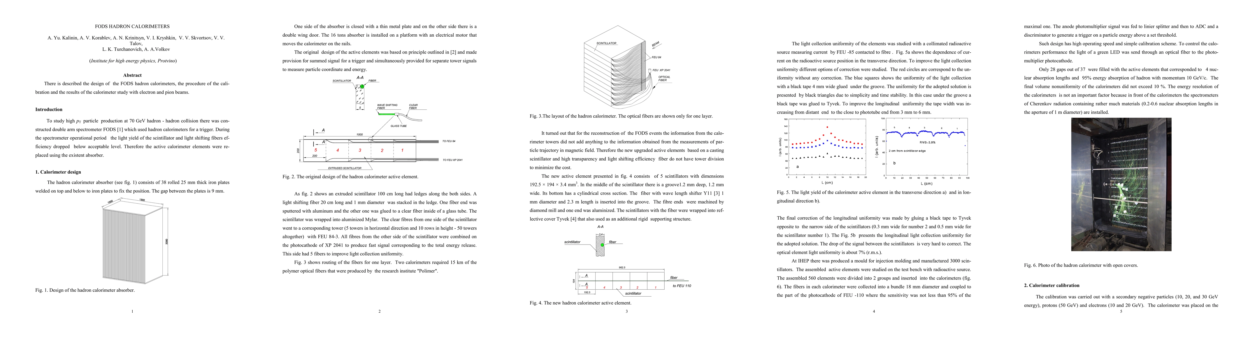 There is described the design of the FODS hadron calorimeters, the procedure of the calibration and the results of the calorimeter study with electron and pion beams.