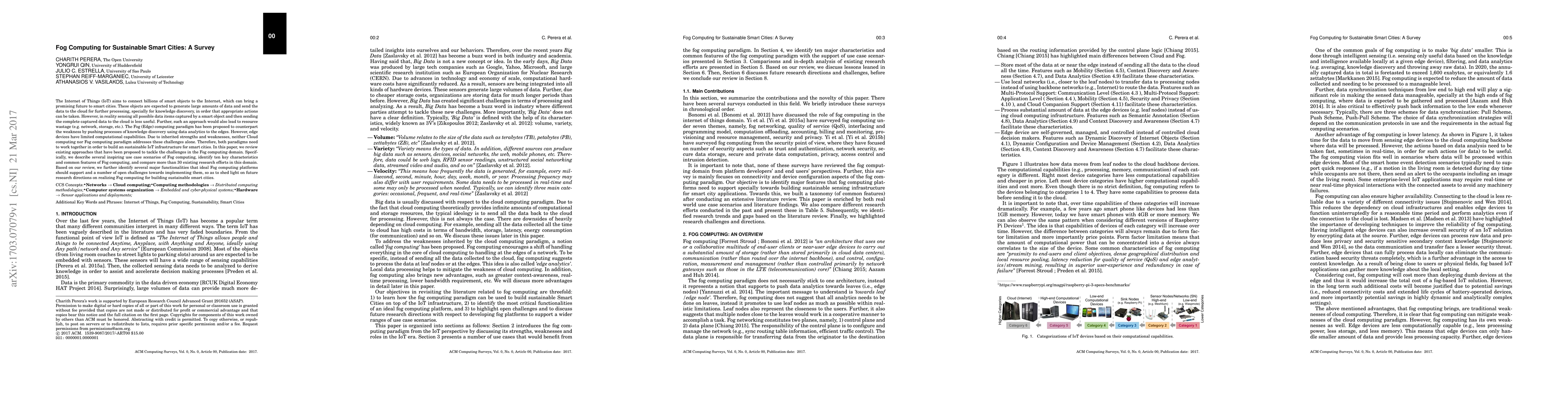 This paper surveys Fog computing approaches for sustainable smart cities, highlighting the integration of IoT with Fog and Cloud computing to address resource wastage. It reviews existing research efforts, identifies key characteristics of Fog computing, and discusses open challenges and future directions for building sustainable smart city infrastructure.