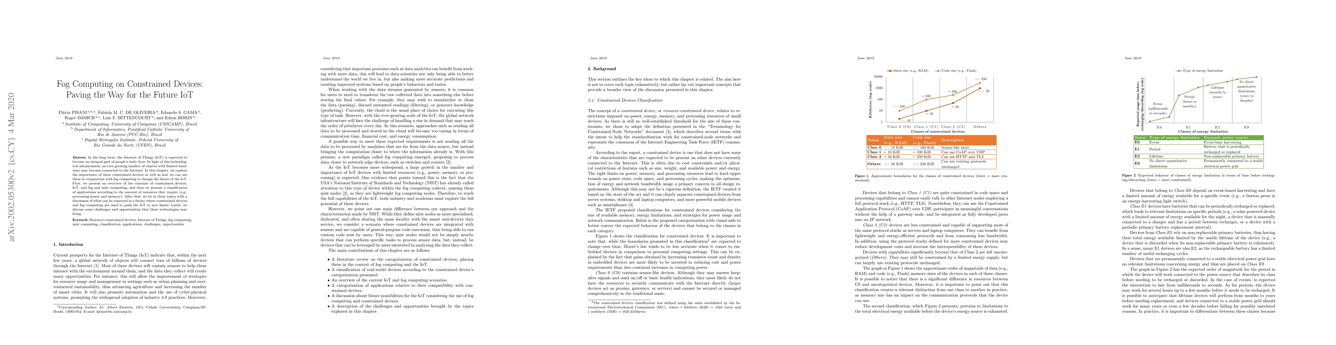 This paper explores the integration of fog computing with constrained IoT devices to enhance future Internet of Things (IoT) applications. It classifies IoT applications based on resource requirements and discusses the potential and challenges of this technological convergence.