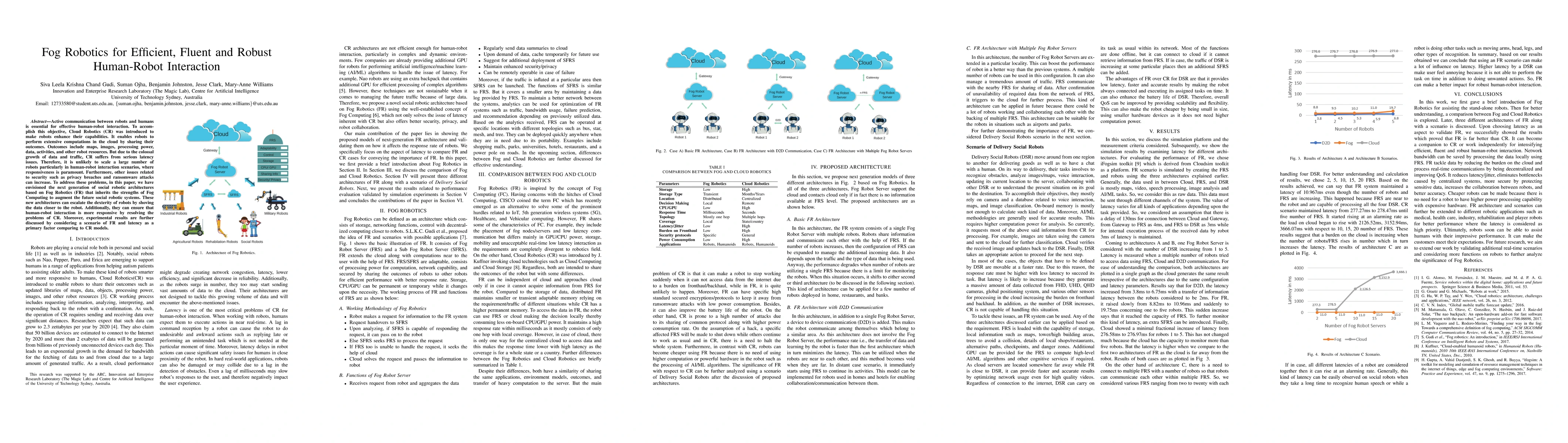 A comparison between Fog Robotics (FR) and Cloud Robotics (CR) was conducted to evaluate the effectiveness of FR in human-robot interaction.