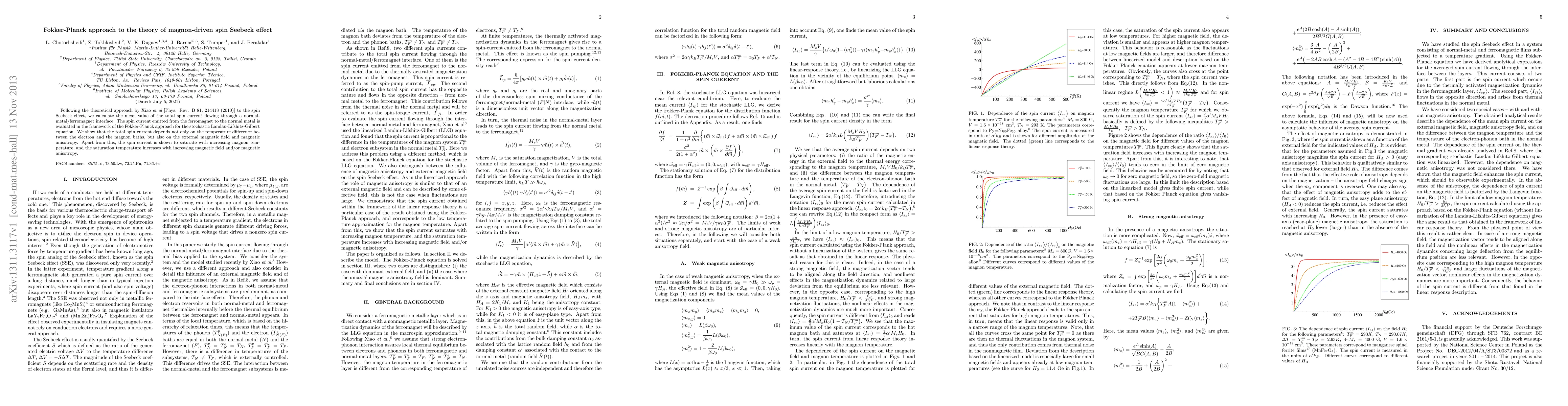 This paper employs a Fokker-Planck approach to analyze the magnon-driven spin Seebeck effect, revealing that the spin current depends on temperature differences, external magnetic fields, and magnetic anisotropy. The spin current saturates with increasing magnon temperature, with saturation temperature rising with higher magnetic field or anisotropy.