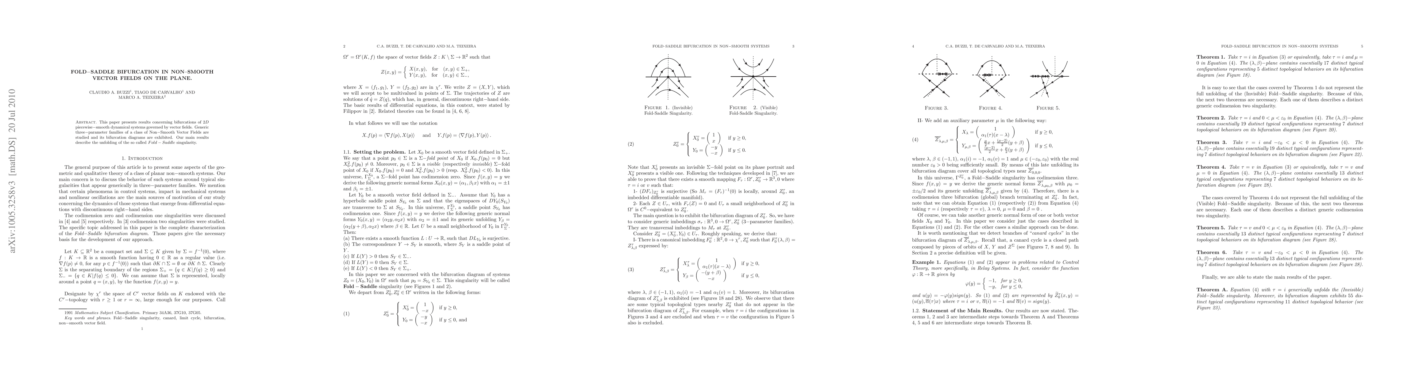This paper presents results concerning bifurcations of 2D piecewise-smooth dynamical systems governed by vector fields. Generic three parameter families of a class of Non-Smooth Vector Fields are studied and its bifurcation diagrams are exhibited. Our main result describes the unfolding of the so called Fold-Saddle singularity.