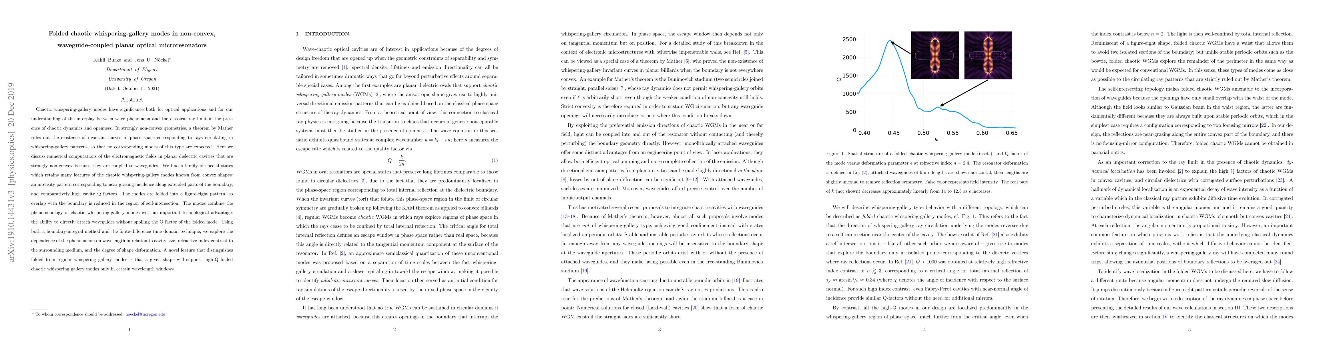 This paper investigates electromagnetic fields in non-convex, waveguide-coupled optical microresonators, uncovering folded chaotic whispering-gallery modes despite the absence of expected invariant curves. These modes maintain high Q factors and support direct waveguide attachment, with distinct wavelength dependencies.