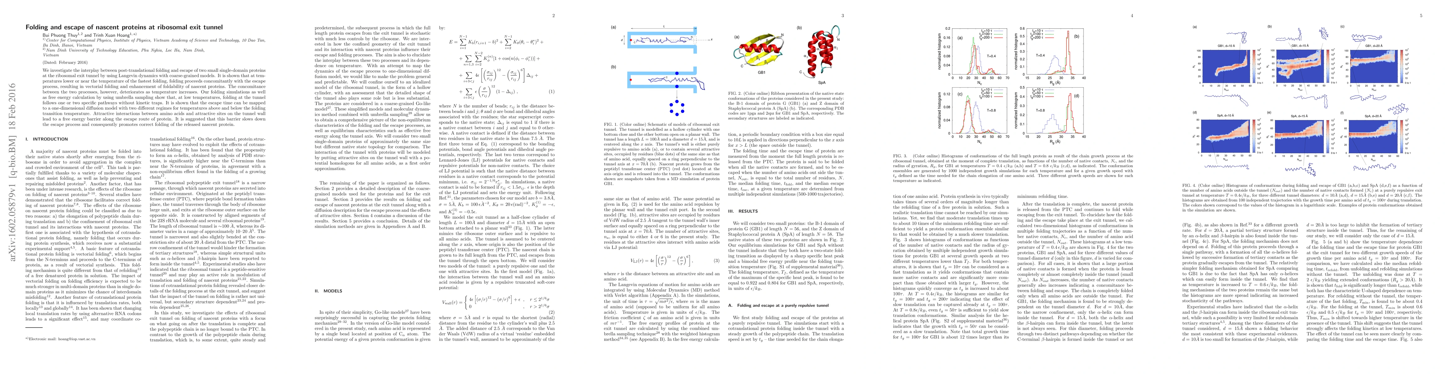 New research shows that folding and escaping of proteins at ribosomal exit tunnels occur together when temperatures are low, but the process diverges as temperature increases. This interaction is suggested to slow down escape by creating a free energy barrier, promoting correct protein folding.