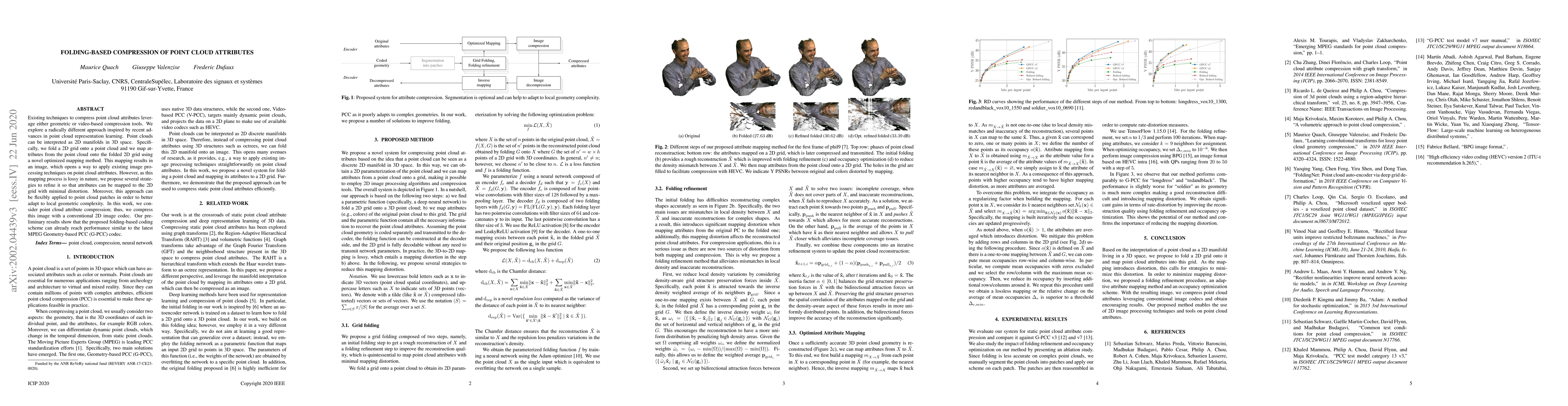 Researchers propose a novel method to compress point cloud attributes by folding them into 2D images, allowing for lossy compression similar to existing image codecs. This approach enables flexible adaptation to local geometric complexity.