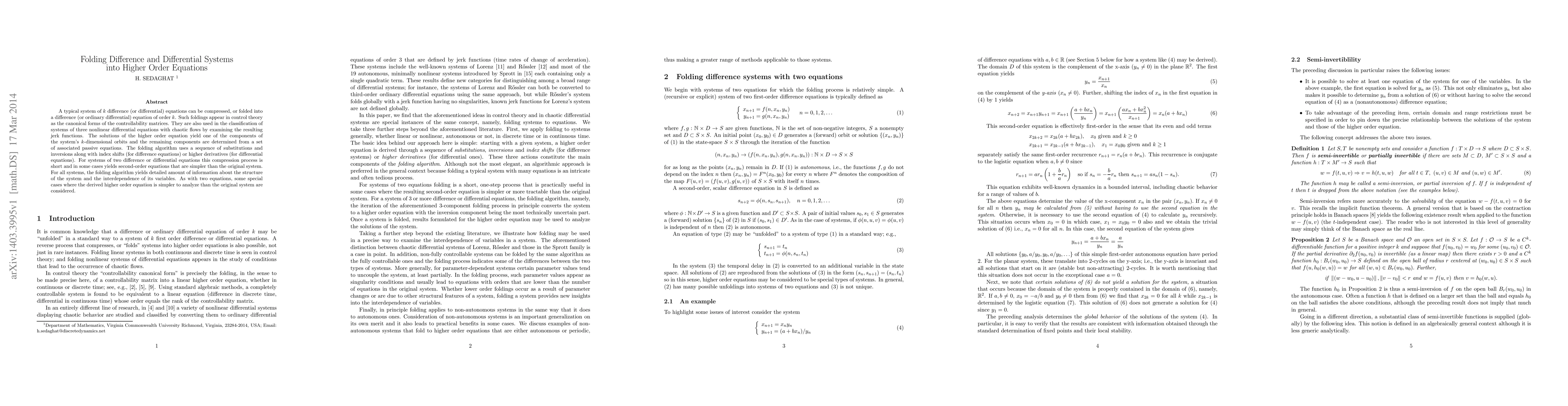 This paper explores the method of compressing k difference or differential equations into a higher order equation of order k, revealing insights into system structure and variable interdependence. The folding algorithm simplifies analysis in some cases, especially for systems of two equations, by deriving second-order equations that may be easier to handle.