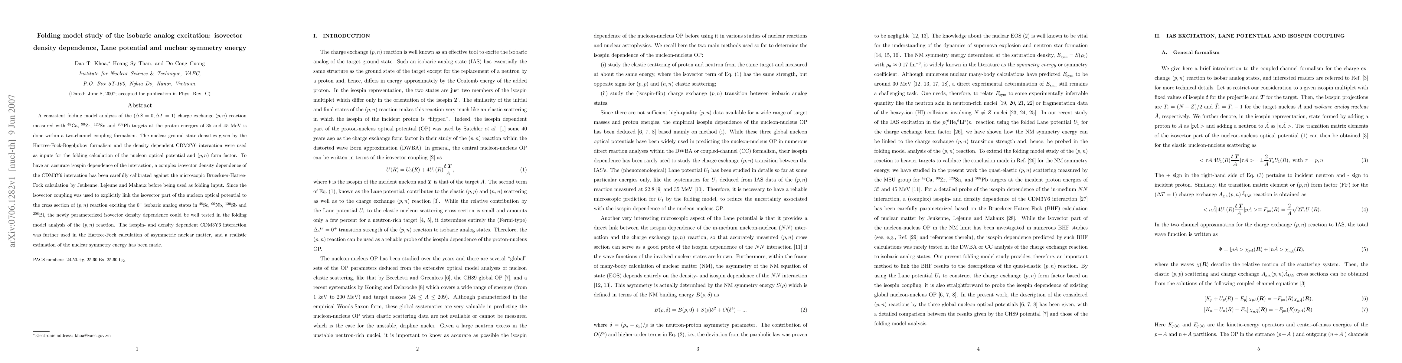 A consistent folding model analysis of the ($\Delta S=0, \Delta T=1$) charge exchange \pn reaction measured with $^{48}$Ca, $^{90}$Zr, $^{120}$Sn and $^{208}$Pb targets at the proton energies of 35 and 45 MeV is done within a two-channel coupling formalism. The nuclear ground state densities given by the Hartree-Fock-Bogoljubov formalism and the density dependent CDM3Y6 interaction were used as inputs for the folding calculation of the nucleon optical potential and \pn form factor. To have an accurate isospin dependence of the interaction, a complex isovector density dependence of the CDM3Y6 interaction has been carefully calibrated against the microscopic Brueckner-Hatree-Fock calculation by Jeukenne, Lejeune and Mahaux before being used as folding input. Since the isovector coupling was used to explicitly link the isovector part of the nucleon optical potential to the cross section of \pn reaction exciting the 0$^+$ isobaric analog states in $^{48}$Sc, $^{90}$Nb, $^{120}$Sb and $^{208}$Bi, the newly parameterized isovector density dependence could be well tested in the folding model analysis of the \pn reaction. The isospin- and density dependent CDM3Y6 interaction was further used in the Hartree-Fock calculation of asymmetric nuclear matter, and a realistic estimation of the nuclear symmetry energy has been made.