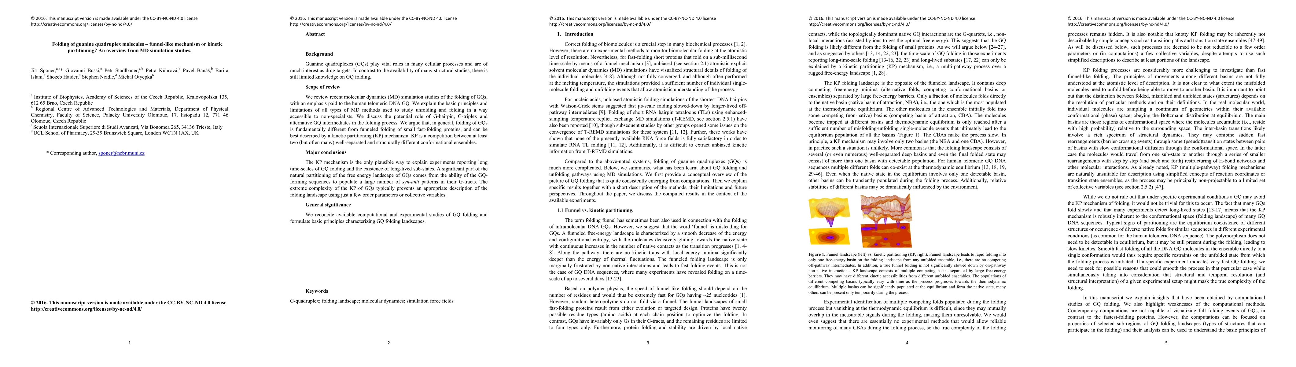 This paper reviews molecular dynamics simulations of guanine quadruplex (GQ) folding, arguing against a funnel-like mechanism and instead supporting a kinetic partitioning (KP) mechanism. The KP mechanism describes GQ folding as a competition between multiple structurally distinct conformations, explaining long folding times and the existence of stable intermediates.