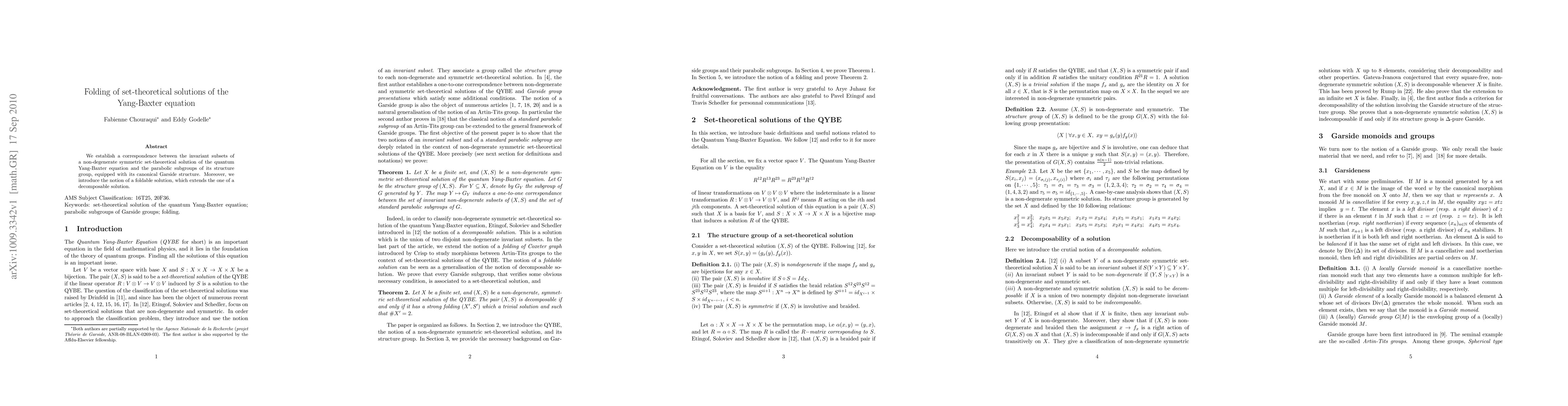 This paper establishes a link between invariant subsets of a symmetric set-theoretical solution of the quantum Yang-Baxter equation and parabolic subgroups of its structure group, using Garside structure. It also introduces the concept of a foldable solution, which generalizes the notion of a decomposable solution.