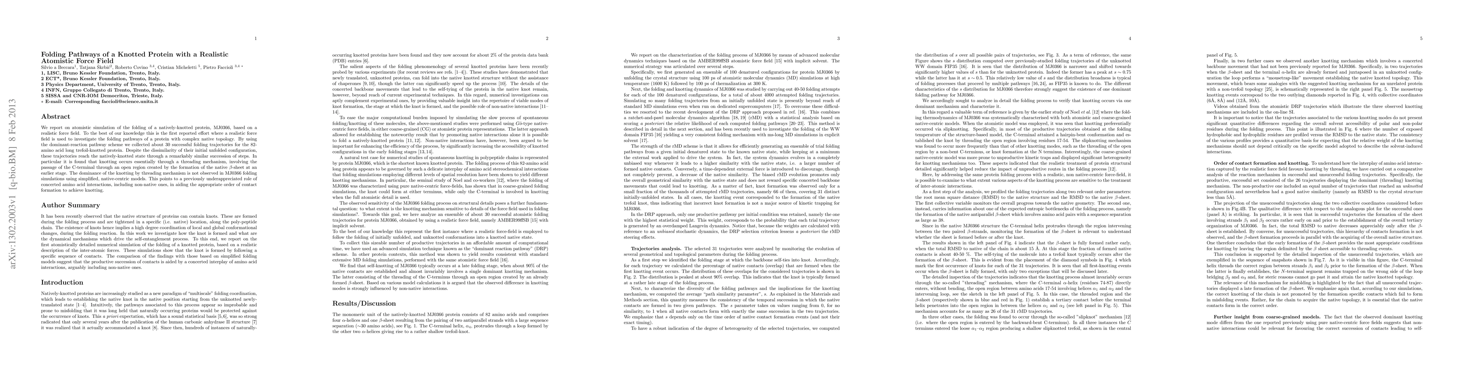 This study uses atomistic simulations with a realistic force field to explore the folding pathways of a natively-knotted protein, MJ0366, revealing a dominant threading mechanism for knotting. The findings highlight the importance of concerted amino acid interactions in achieving the correct folding order, contrasting with simplified models.