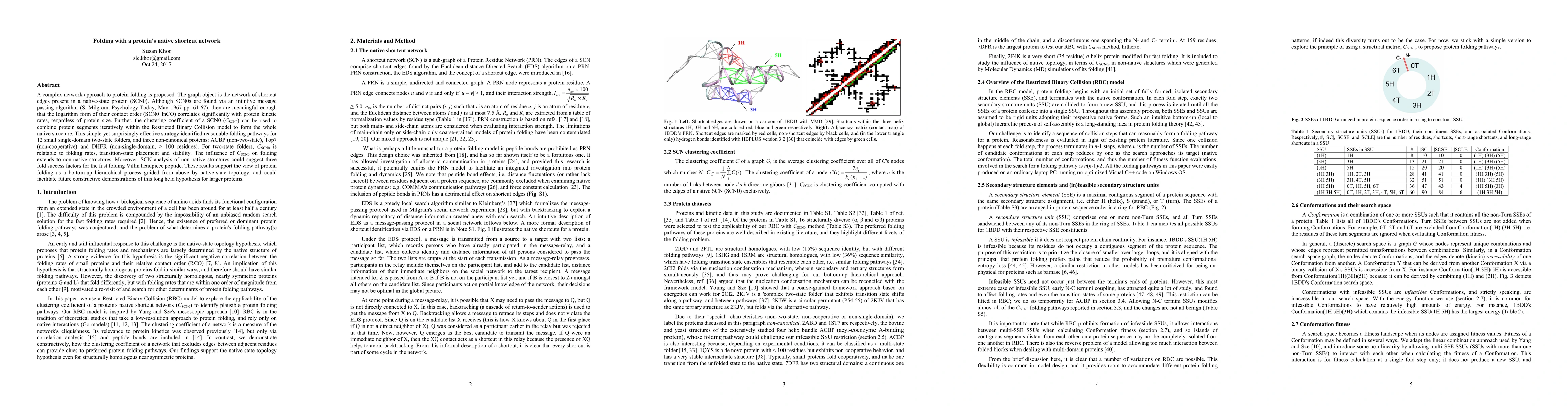A complex network approach to protein folding is proposed. The graph object is the network of shortcut edges present in a native-state protein (SCN0). Although SCN0s are found via an intuitive message passing algorithm (S. Milgram, Psychology Today, May 1967 pp. 61-67), they are meaningful enough that the logarithm form of their contact order (SCN0_lnCO) correlates significantly with protein kinetic rates, regardless of protein size. Further, the clustering coefficient of a SCN0 (CSCN0) can be used to combine protein segments iteratively within the Restricted Binary Collision model to form the whole native structure. This simple yet surprisingly effective strategy identified reasonable folding pathways for 12 small single-domain two-state folders, and three non-canonical proteins: ACBP (non-two-state), Top7 (non-cooperative) and DHFR (non-single-domain, > 100 residues). For two-state folders, CSCN0 is relatable to folding rates, transition-state placement and stability. The influence of CSCN0 on folding extends to non-native structures. Moreover, SCN analysis of non-native structures could suggest three fold success factors for the fast folding Villin headpiece peptide. These results support the view of protein folding as a bottom-up hierarchical process guided from above by native-state topology, and could facilitate future constructive demonstrations of this long held hypothesis for larger proteins.