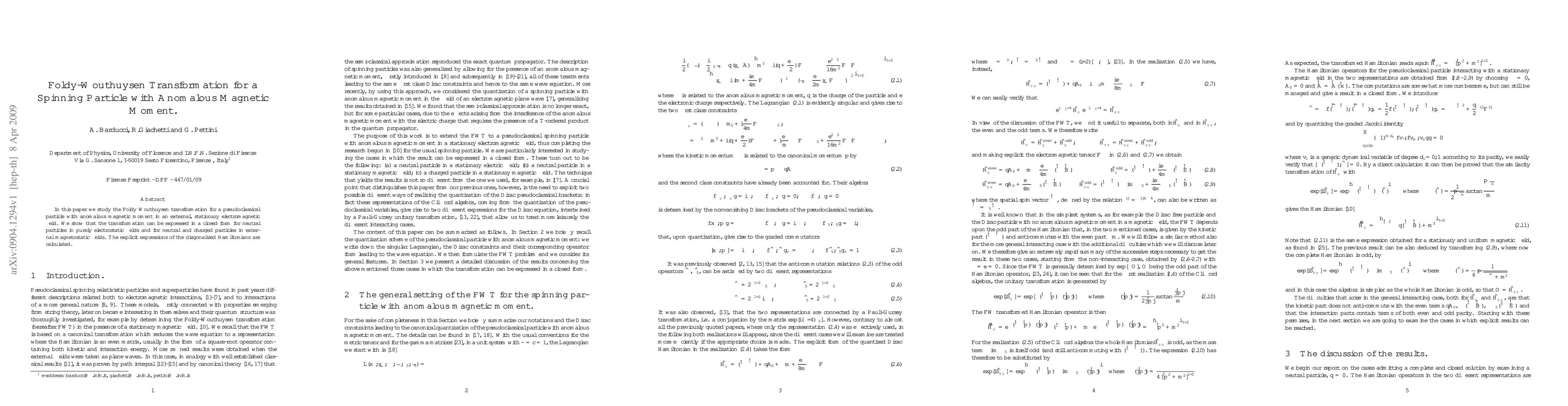 This paper explores the Foldy-Wouthuysen transformation for a spinning particle with an anomalous magnetic moment in external electromagnetic fields, deriving closed-form expressions for both neutral and charged particles in electrostatic and magnetostatic fields, and providing explicit diagonalized Hamiltonians.