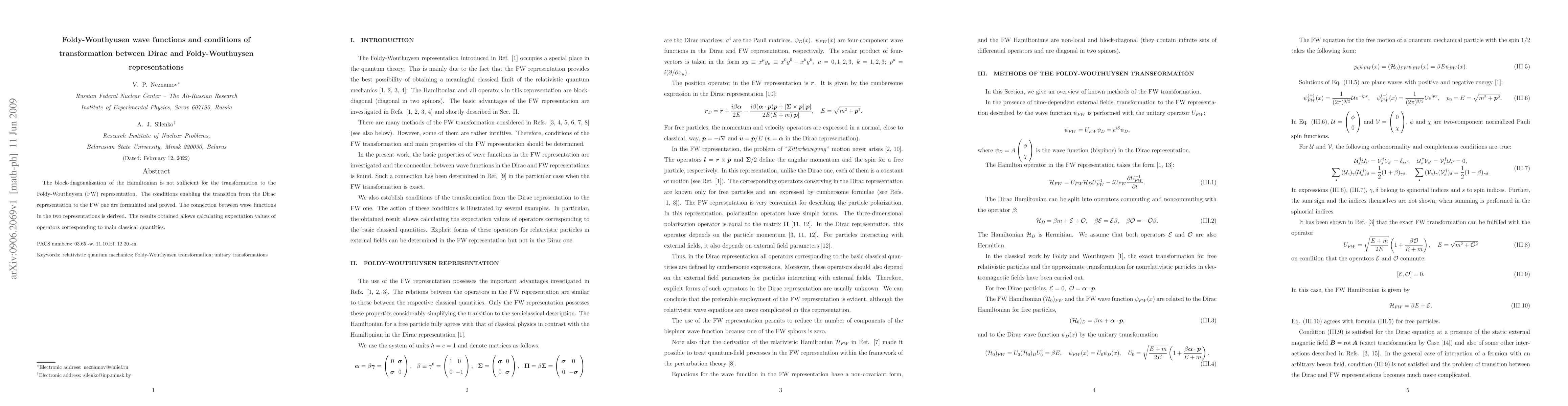 The paper formulates and proves the necessary conditions for transforming from the Dirac to the Foldy-Wouthuysen representation, deriving the connection between wave functions in both representations, enabling calculations of expectation values for classical quantities.