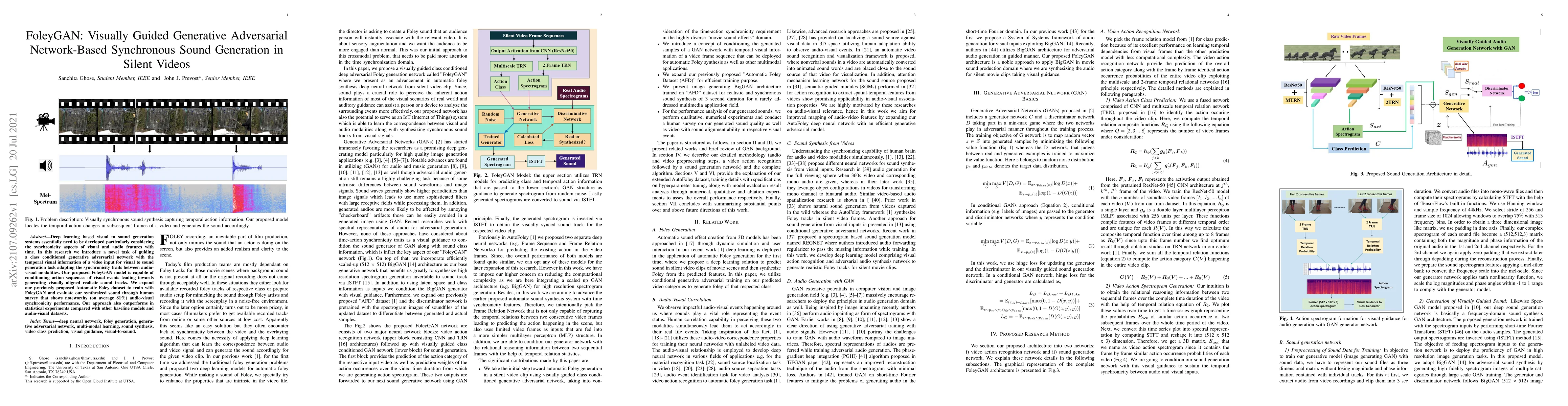 Researchers introduce FoleyGAN, a novel GAN-based model that generates realistic sound tracks in sync with visual events from videos, achieving 81% audio-visual synchronicity performance.