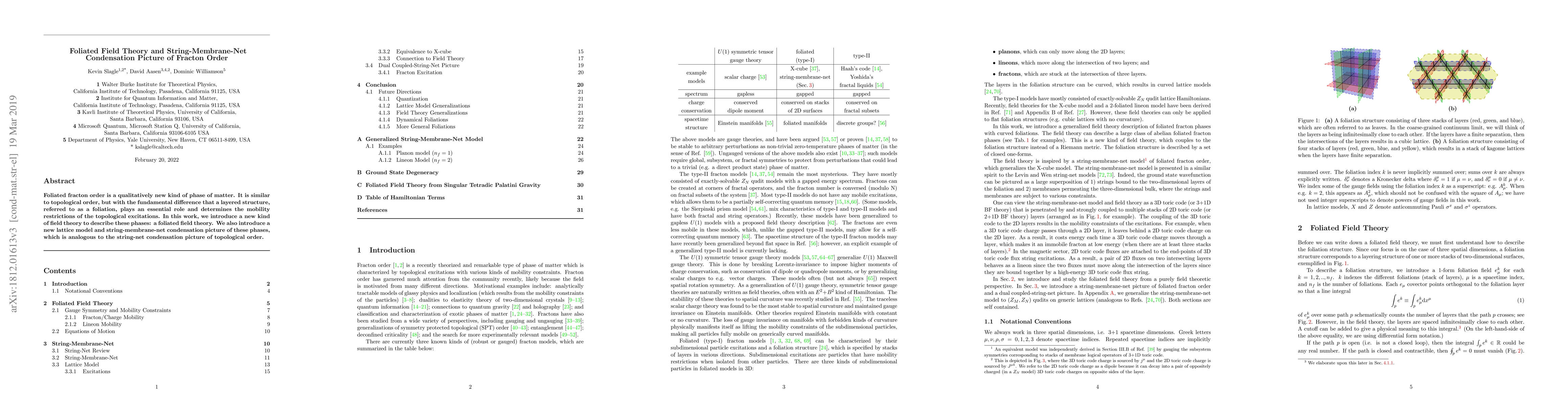This paper introduces foliated field theory to describe foliated fracton order, a novel phase of matter characterized by layered structures that restrict excitation mobility. It also presents a new lattice model and a string-membrane-net condensation picture analogous to the string-net condensation for topological order.
