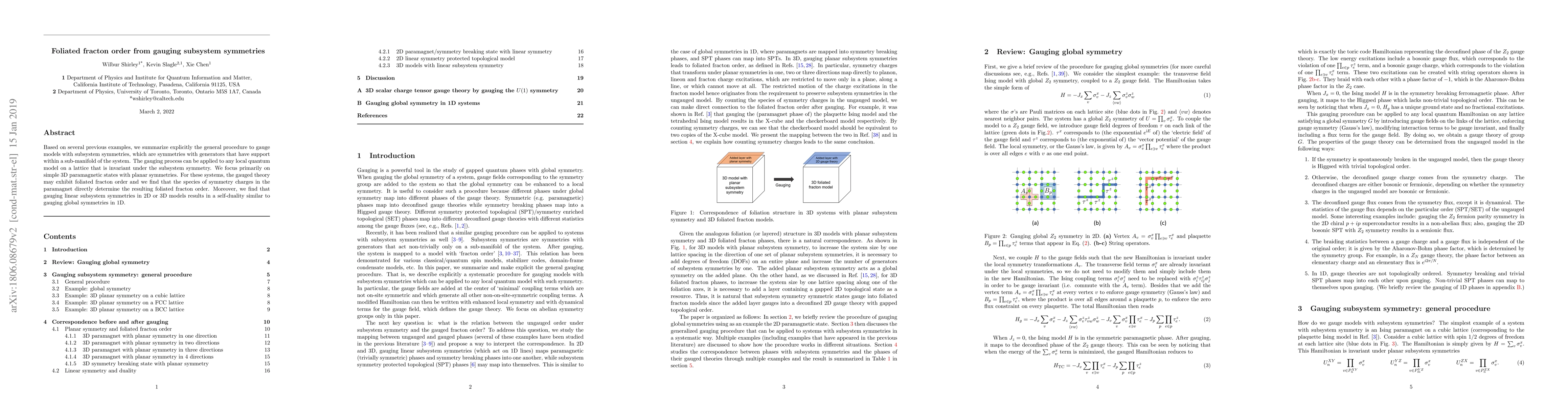 This paper outlines a method to gauge subsystem symmetries in local quantum models, focusing on 3D paramagnetic states with planar symmetries. It reveals that the gauging process can lead to foliated fracton order, with the species of symmetry charges dictating the resulting order.