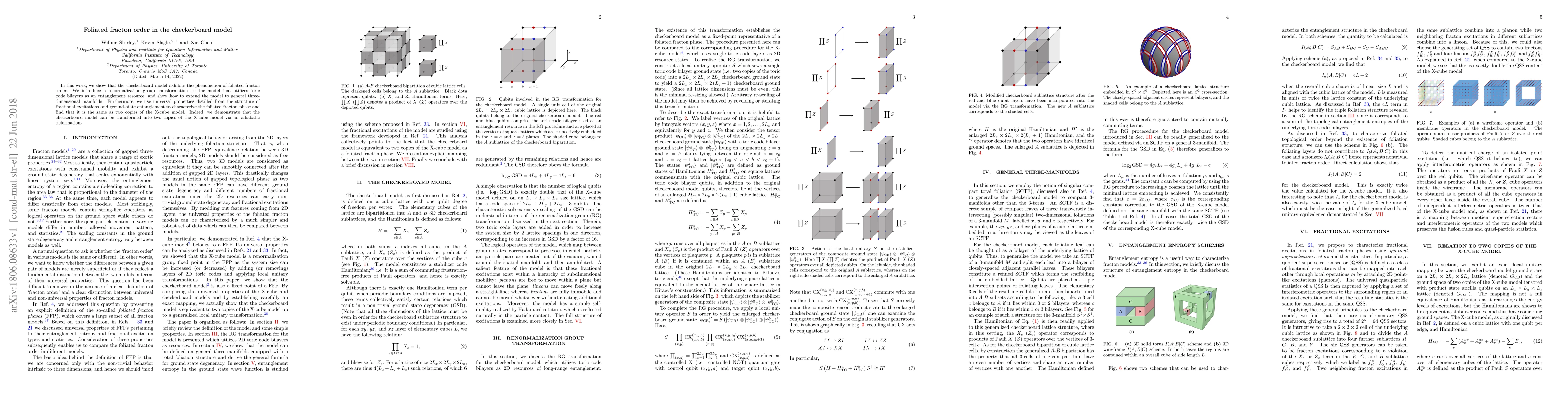 This paper demonstrates that the checkerboard model displays foliated fracton order and introduces a renormalization group transformation using toric code bilayers. It shows that the model can be transformed into two copies of the X-cube model through an adiabatic deformation, highlighting the equivalence between the two systems.