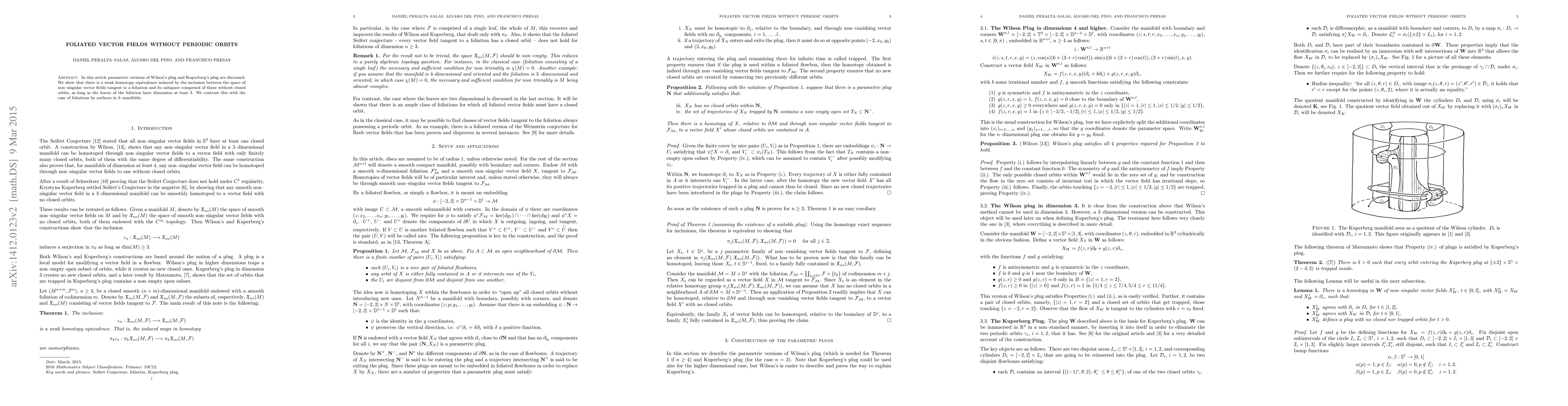 This paper explores the weak homotopy equivalence between the space of vector fields tangent to a foliation without periodic orbits and a subspace of such fields, demonstrating this for foliations with leaves of dimension at least 3, contrasting with the behavior in 3-manifolds with surface foliations.